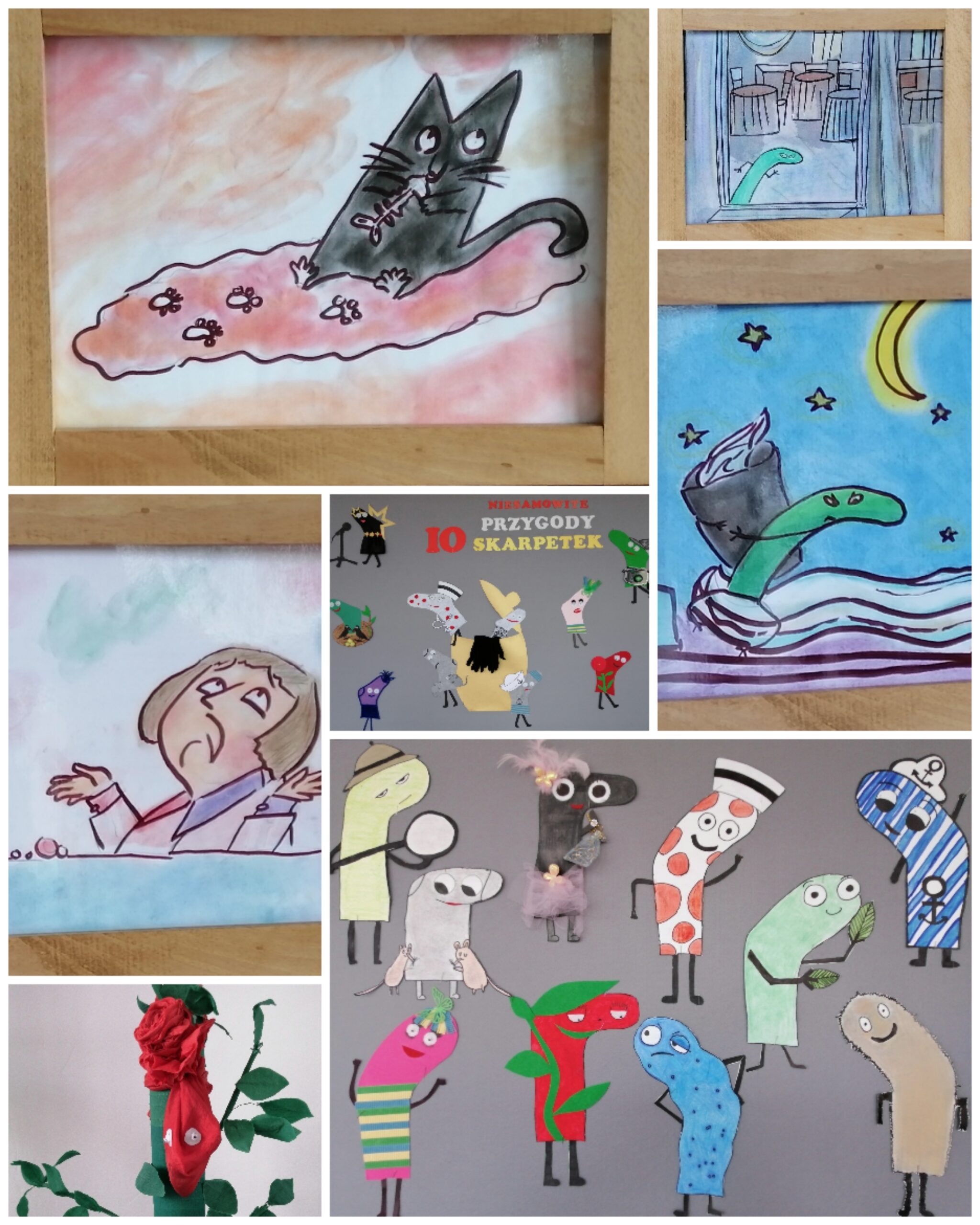 Aha, piękne karty do teatrzyku kamishibai oraz dekoracje do niego przygotowały uczennice: Iga, Amelka i Weronika 🙂